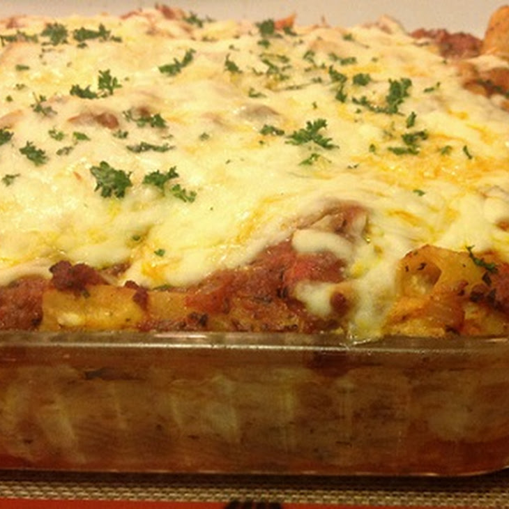 Meaty Ziti Casserole With Ground Beef And Italian Sausage